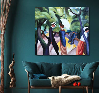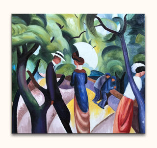 Handgemaltes Gemälde Promenade von August Macke. Hochwertiges Ölgemälde mit lebendigen Farben durch moderne Malerei.