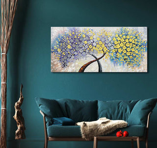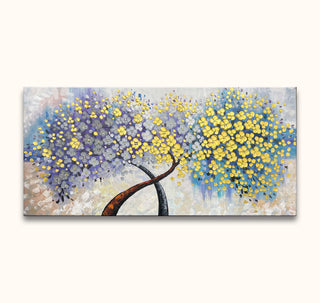 Handgemaltes Gemälde Baumromantik. Hochwertiges Ölgemälde mit Darstellung zweier blühender Bäume durch moderne Spachtelmalerei.