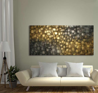 Handgemaltes Gemälde Golden Dawn. Hochwertiges Acrylgemälde, bei dem mittels moderner Spachtelmalerei goldgelbe und silbergraue Flächen dargestellt werden.