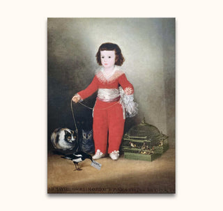 Handgemaltes Ölgemälde von Manuel Osorio Manrique de Zuniga aus Goyas Feder. Hochwertiges Ölgemälde, das ein Mädchen mit zwei Katzen und einer Ente in klassischer Maltechnik darstellt.