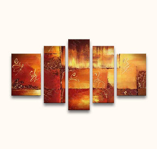 Handbemaltes 5-Panel-Gemälde aus heißem Stahl. Hochwertiges Ölgemälde mit abstrakten kubistischen Formen durch moderne Spachtelmalerei.