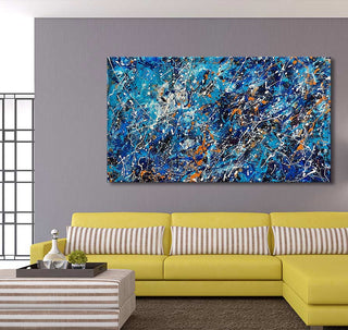 Handgemaltes Gemälde Ozeanlicht von Jackson Pollock. Hochwertiges Ölgemälde mit lebendigen Farben durch moderne Malerei.