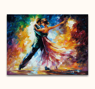 Original handgemaltes Gemälde „Entzückendes Walzerpanorama“ im Stil von Leonid Afremov, von Großmeistern. Dieses hochwertige, moderne Ölgemälde fängt die einzigartige Schönheit eines tanzenden Paares durch impressionistische Malerei ein. Dies ist ein Originalwerk, das vom Stil Leonid Afremovs inspiriert ist, und keine Reproduktion.