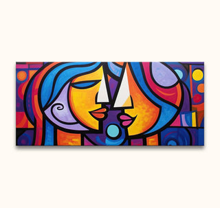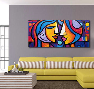 Handgemaltes Gemälde Josephine - Pablo Picasso-Signatur. Hochwertiges modernes abstraktes Ölgemälde, das Picasso zusammen mit seiner Geliebten Josephine durch kubistische Malerei zeigt.