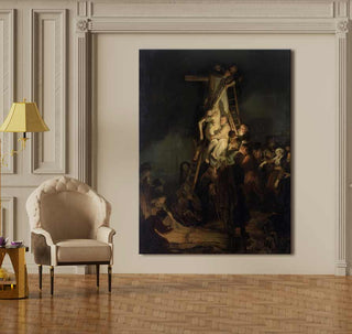 Handgemaltes Ölgemälde „Die Kreuzabnahme“ von Rembrandt van Rijn. Hochwertiges Ölgemälde, das den Abstieg vom Kreuz des Juzus durch klassische Malerei darstellt.