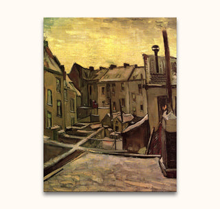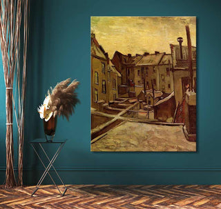 Handgemaltes Ölgemälde „Hinterhöfe in Antwerpen“ von Vincent van Gogh. Hochwertiges Ölgemälde, das die Hinterhöfe von Vincents Haus in Antwerpen in impressionistischer Malerei darstellt.