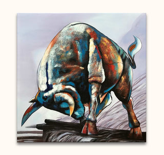 Wütender Stier – Öl auf Leinwand